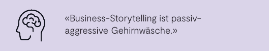 Storytelling hat manchmal einen schlechten Ruf: «Passiv-aggressive Gehirnwäsche» nannte es mal ein Freund von uns.